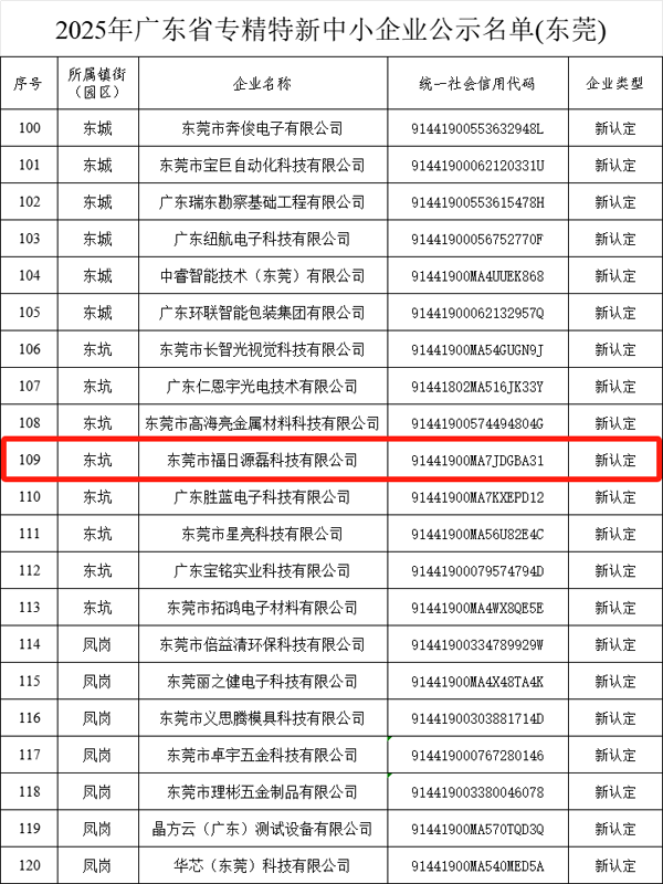 1月5日,廣東省優質中小企業梯度培育名單完成公示,福日電子成員企業源磊科技成功獲評廣東省“專精特新”中小企業。
